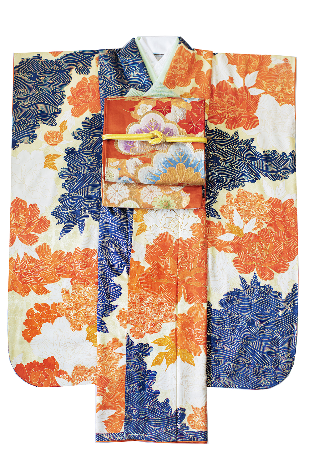 合わせる帯は他の礼装同様に袋帯ですが、華やかな飾り結びにすることが多いです。