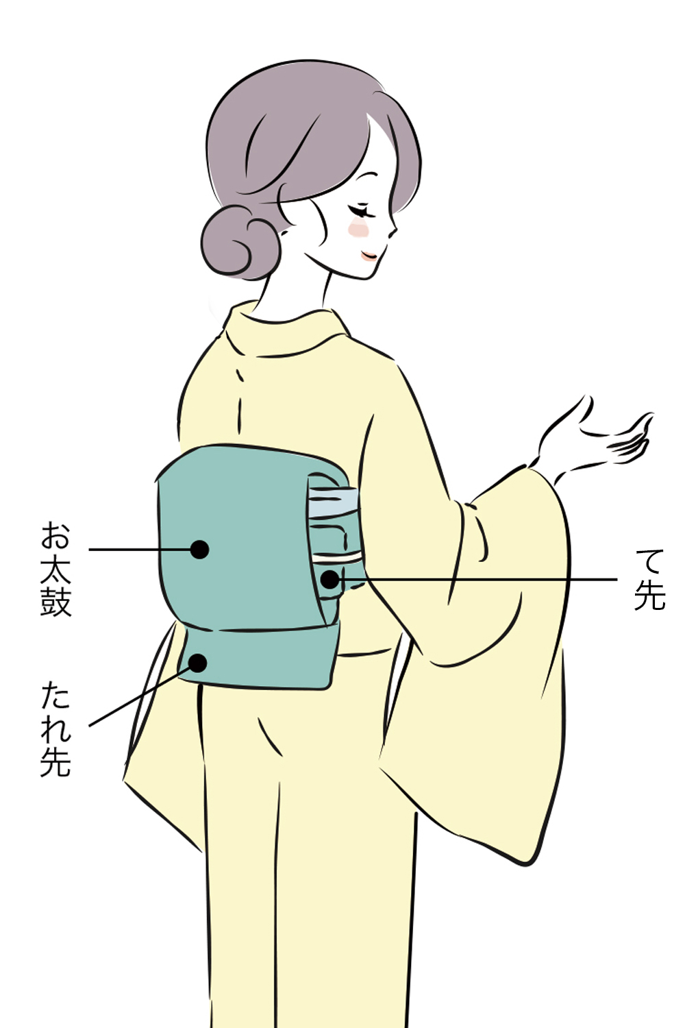 (ここでは名古屋帯のイラストを使って紹介します。)