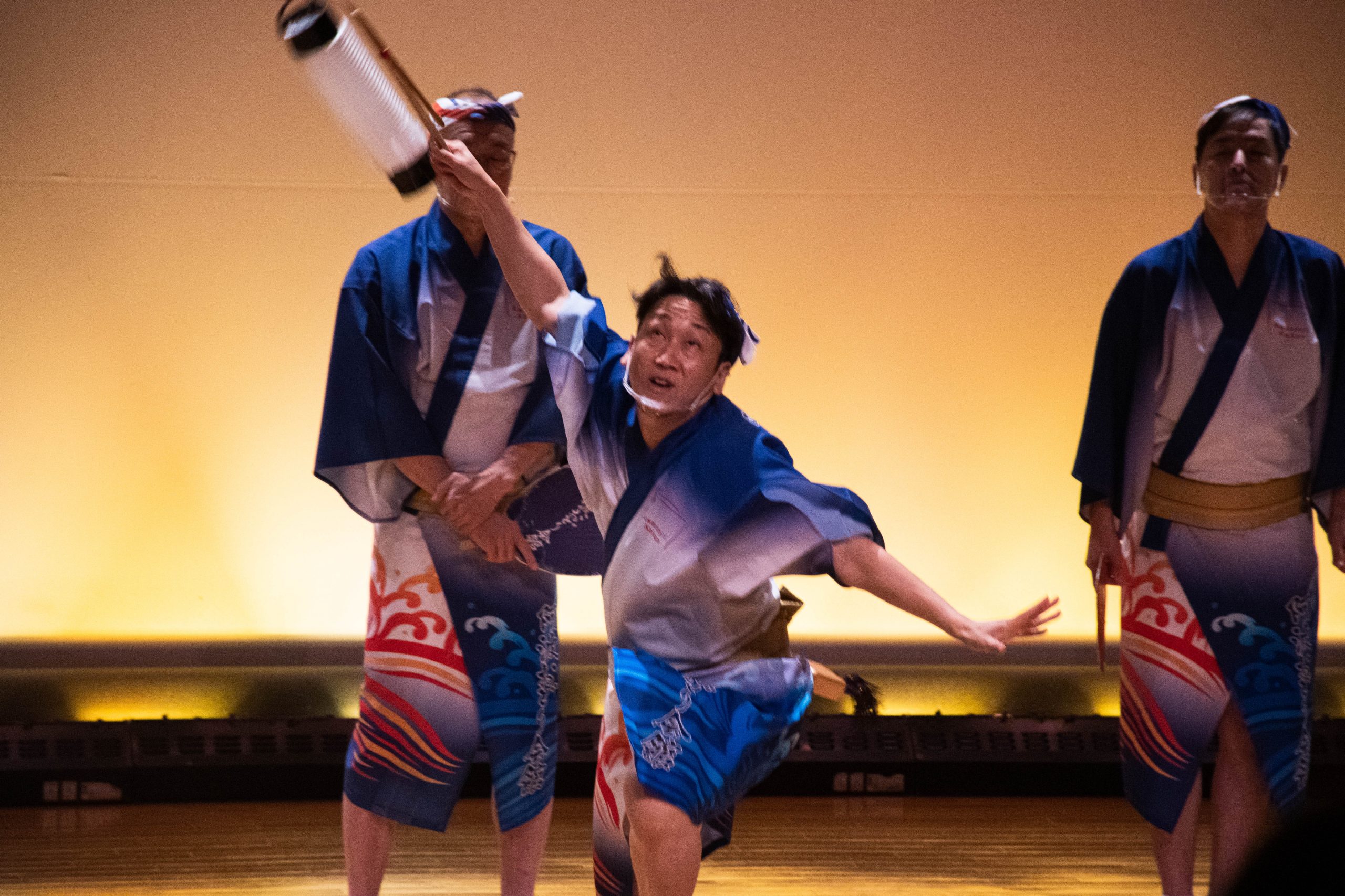 踊り方を教えてもらった後には、会館専属連による演舞の披露があります。