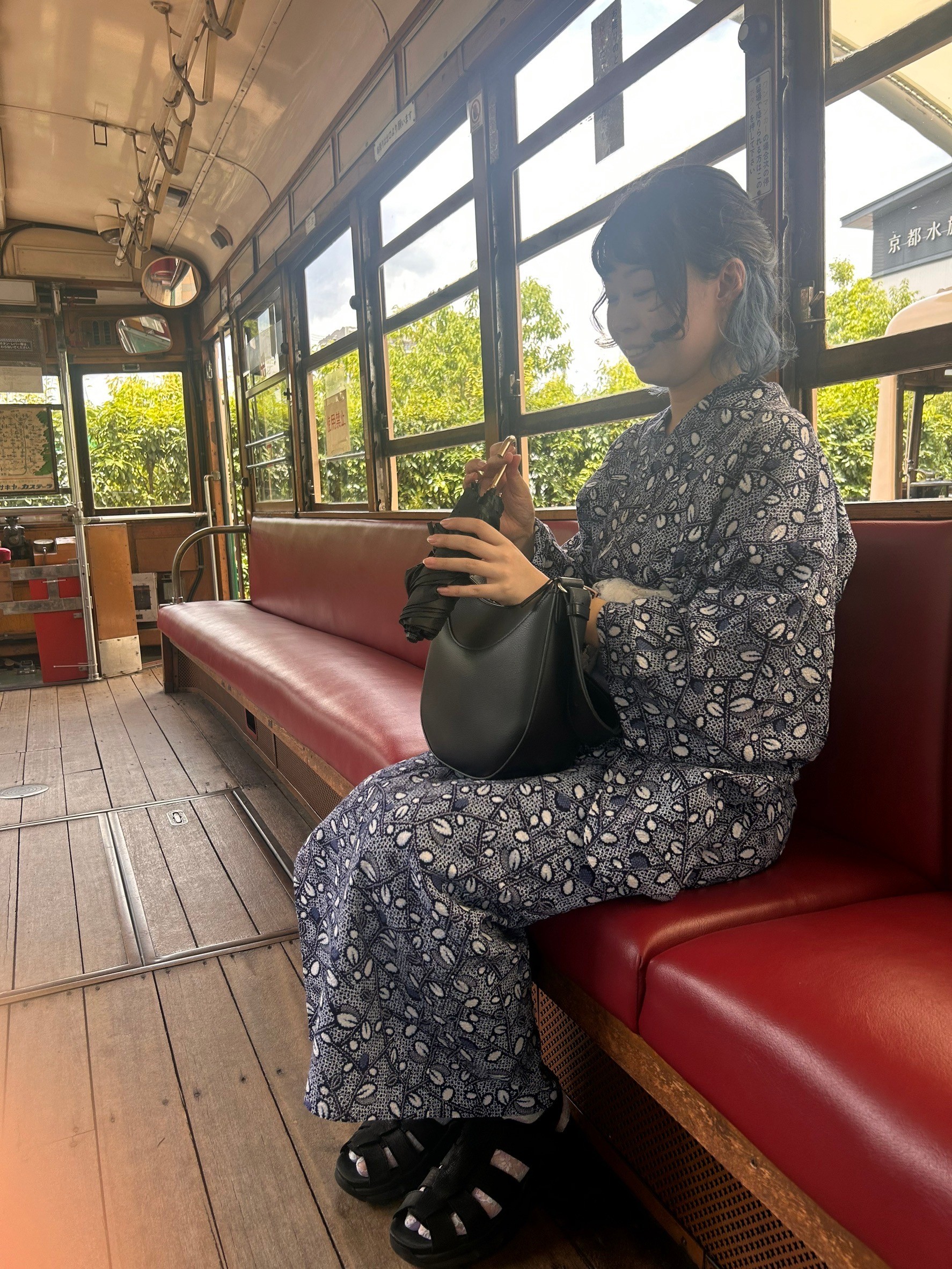 レトロな車内の雰囲気は、浴衣での撮影にもぴったり!