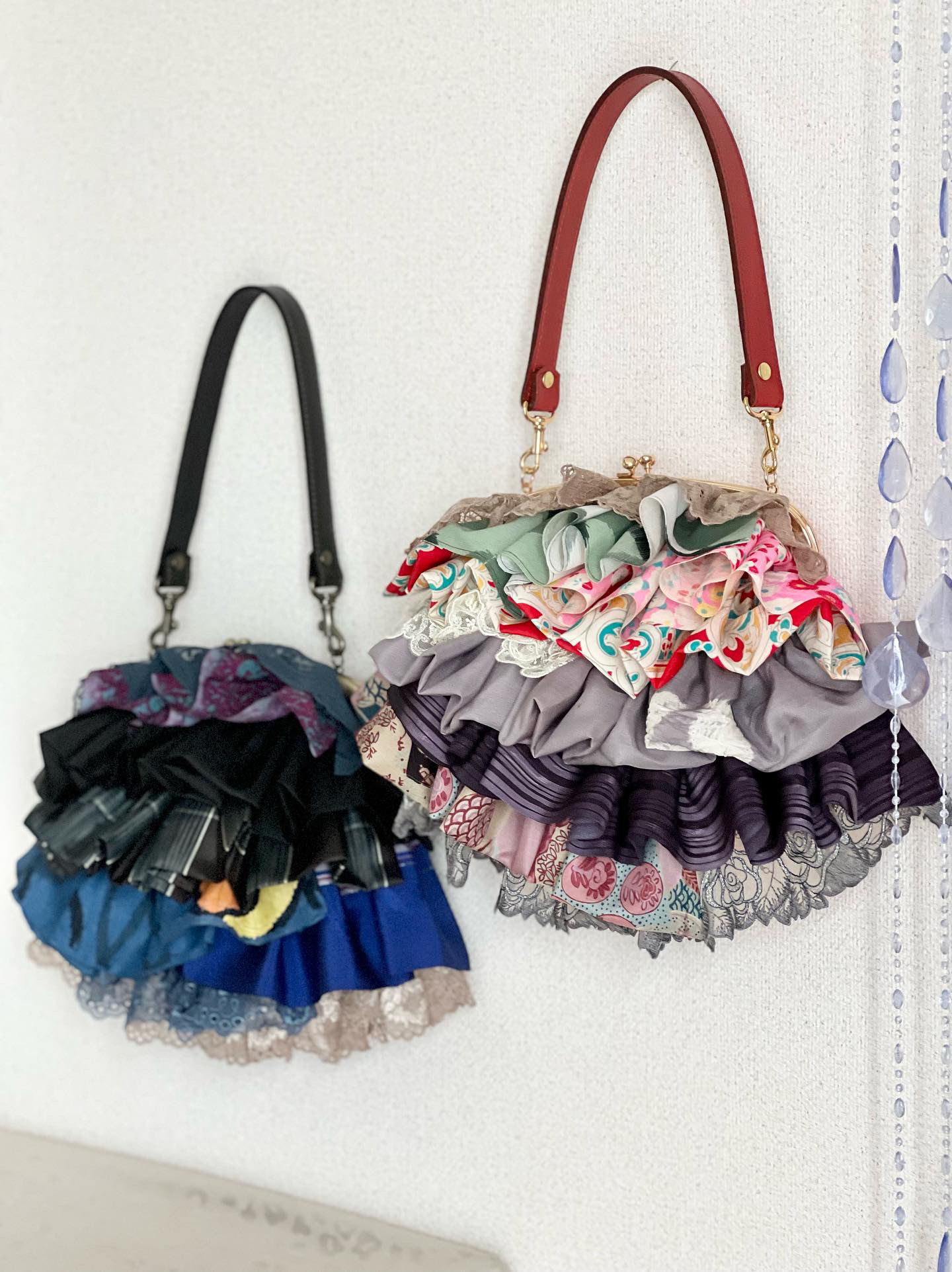 群馬発。元々アーティストだった作家さんの感性が炸裂するkawiiブランド。代名詞とも言える「イニシエフリル」は厳選された着物の生地をたっぷり使用したオリジナルバッグ。