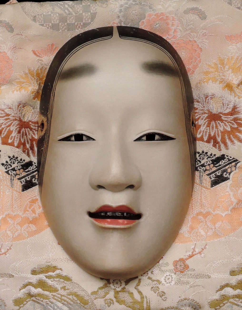 この能面の背後にあるのが収納するための袋だそう.ちなみに,能トリビアサイトも教えていただいたので興味のある方は是非ご覧になってください.https://www.the-noh.com/jp/trivia/index.html