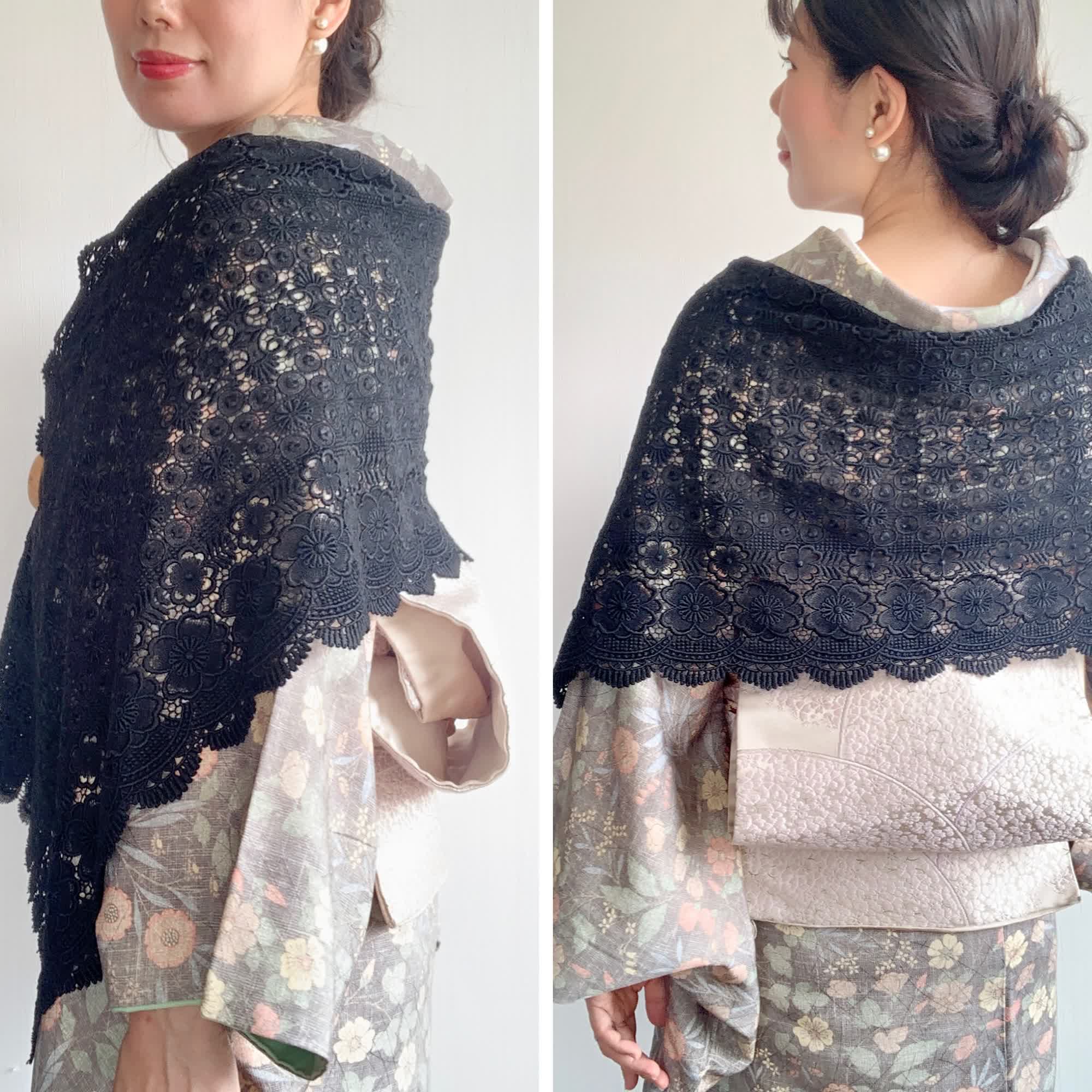 軽やかな生地の羽織も素敵ですが… 個人的にはレースのショールが大活躍!