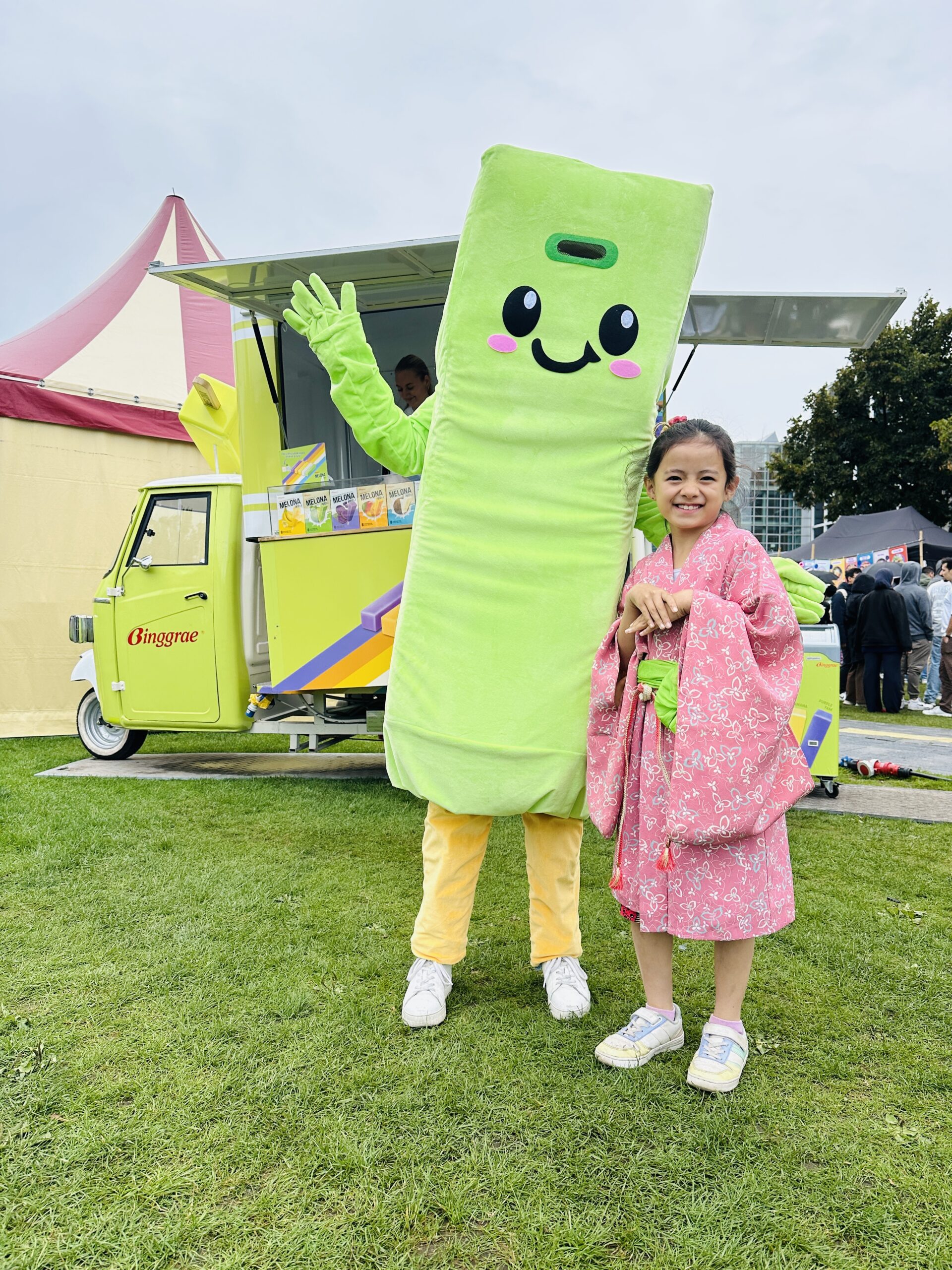 しかし、会場に到着すると、あまりの天気の悪さにこの日のステージは中止になり、子供達は美味しい日本食を吸い込むように食べ、ラブブ(オランダでも大人気)やらクロミやら、娘からねだられ。