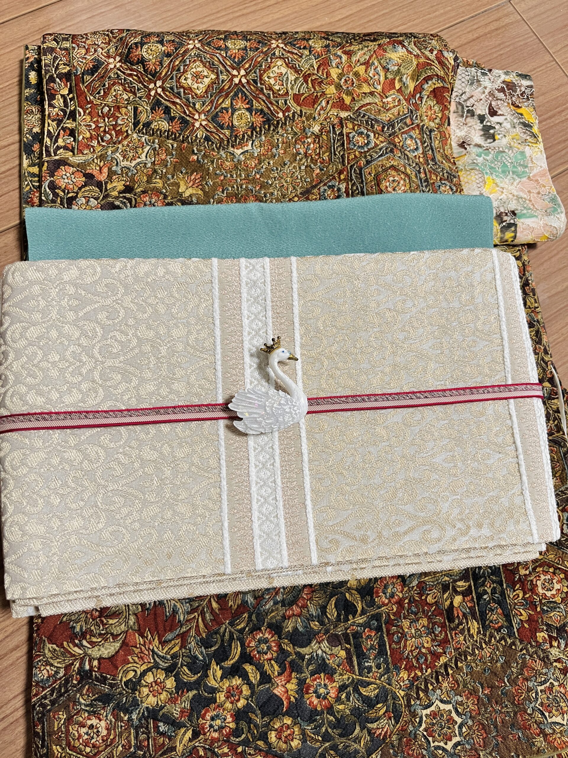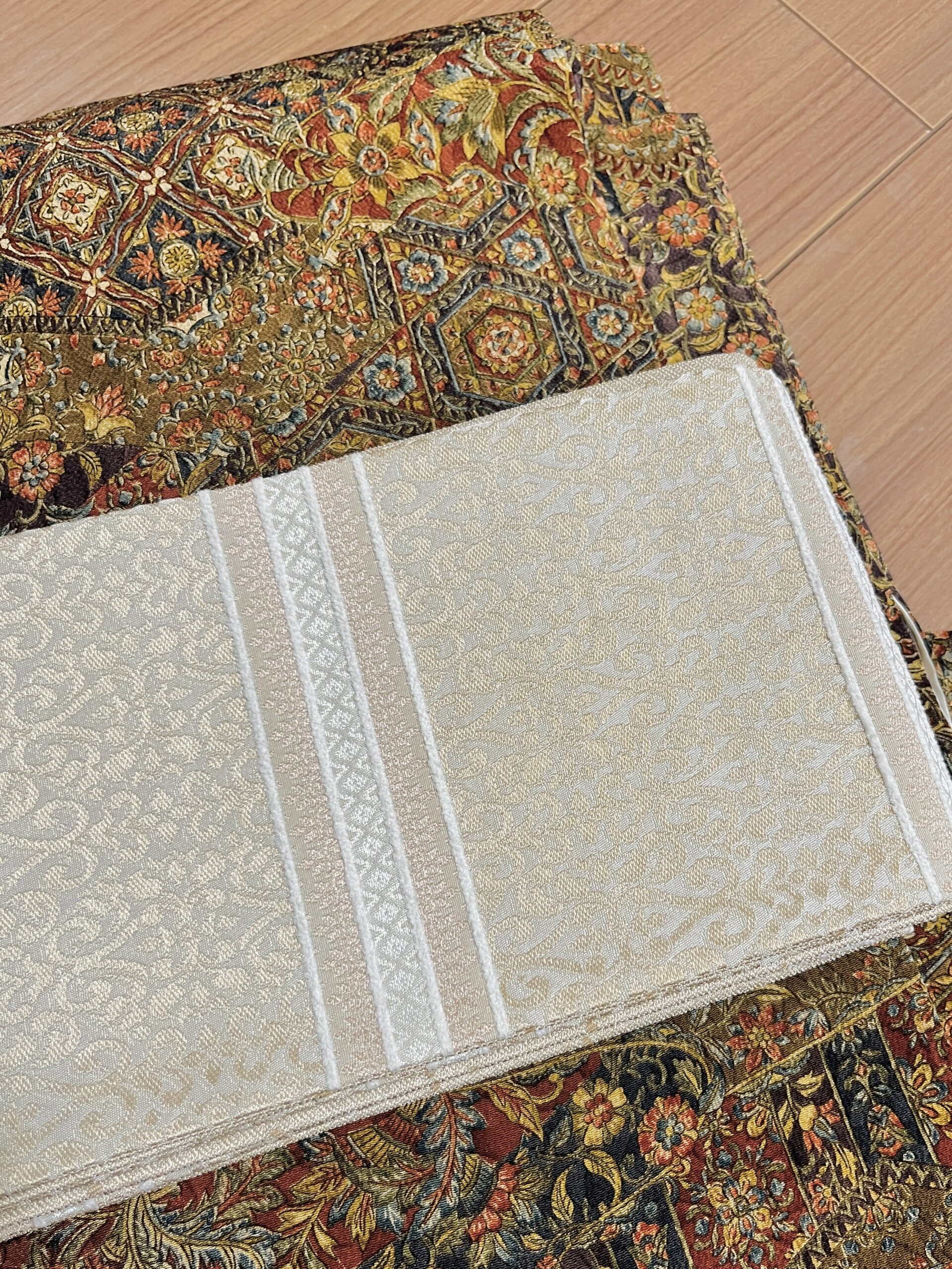こちらは比較的合いそうな、ペルシャ紋の半幅帯。