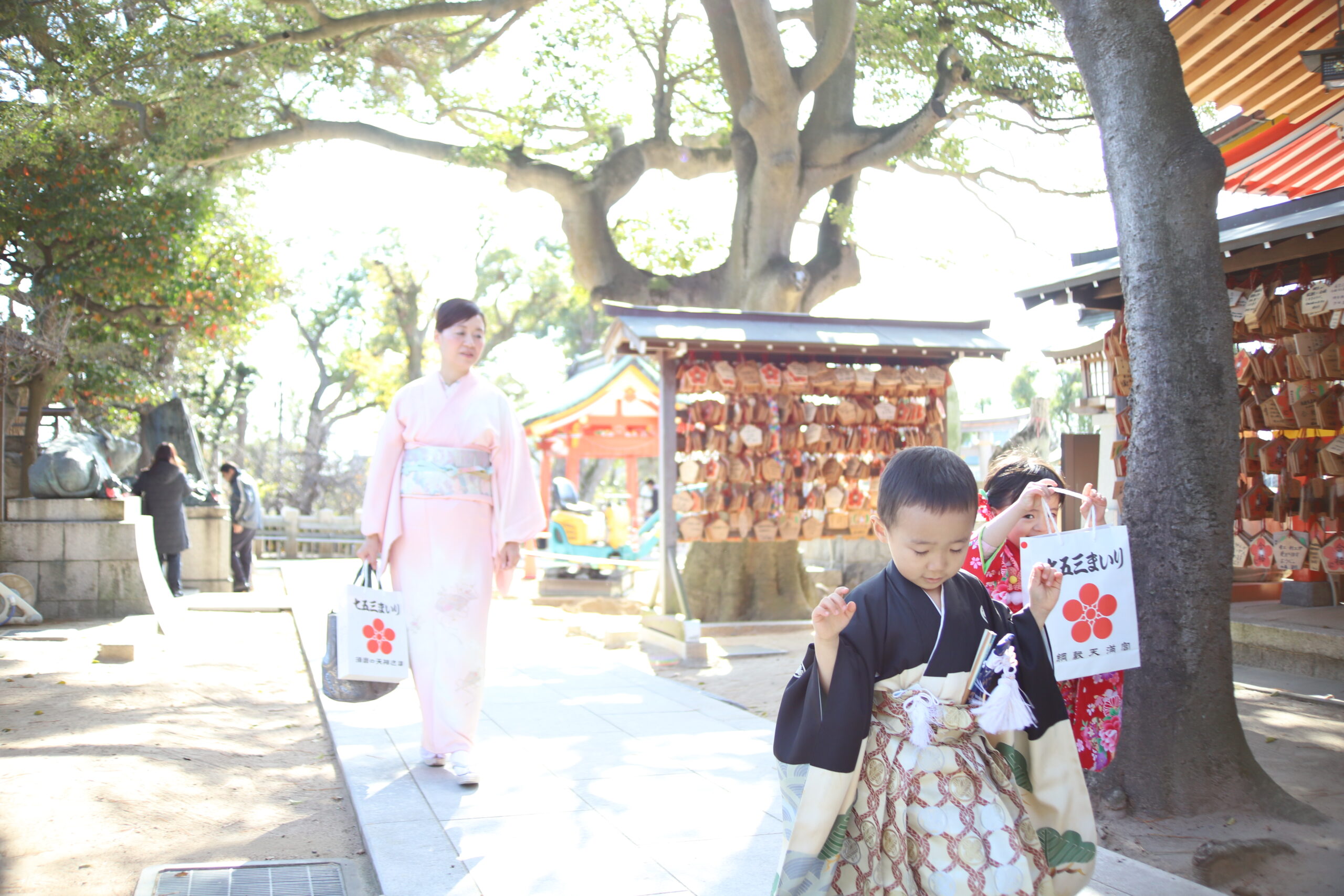 我が家の上の子供達二人は神戸に住んでいた頃に、七五三詣りと撮影を一緒に行いました。