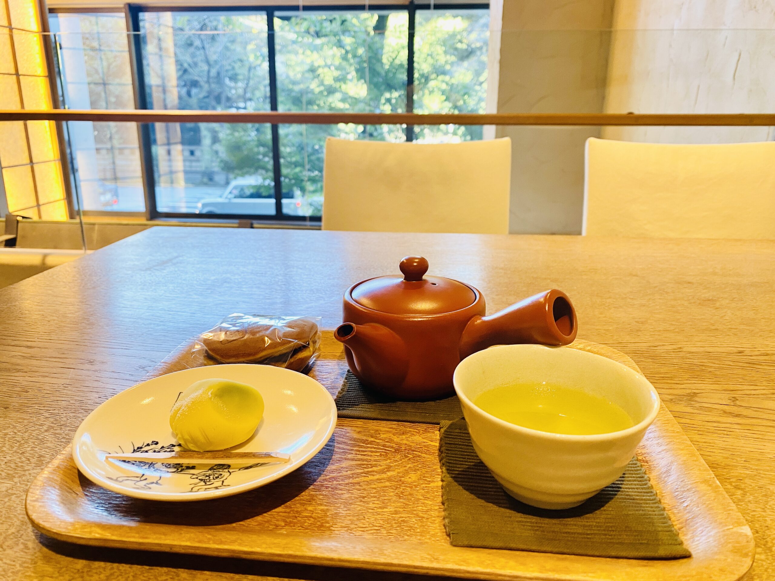 ガラスケース越しに並ぶ、色とりどりのお菓子たちを目の前に、アレコレ悩み選んだのは、季節の上生菓子「銀杏」と、定番の「どらやき」。
