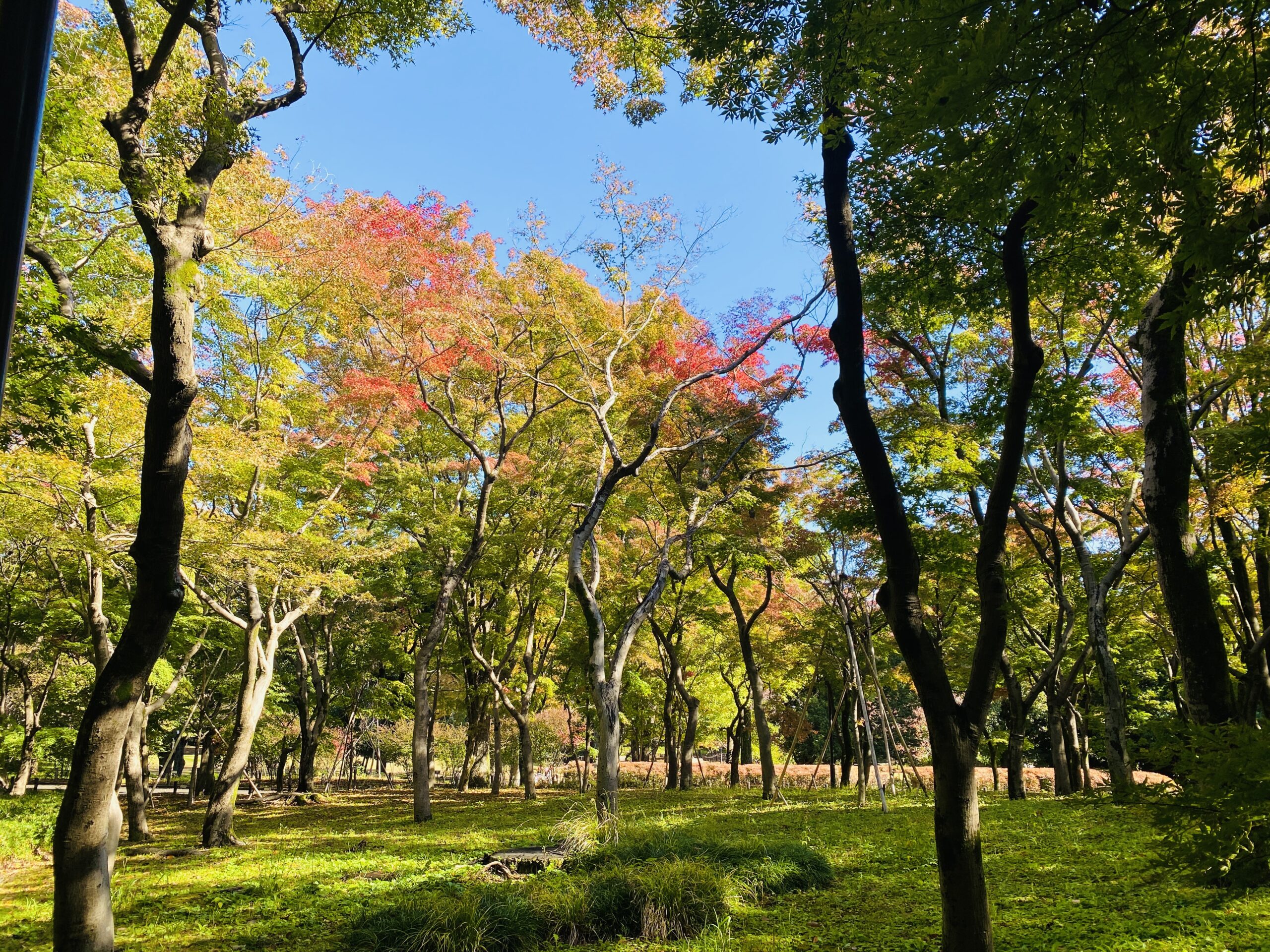 おやつ時間のあとは、北の丸公園のもみじ林へ寄り道。 美味しいおやつのカロリー消費を兼ねて、色づき具合を調査♪