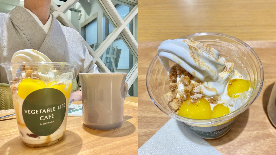 展示とコラボした「高輪月見ソフトクリーム」をいただきました。豆乳ソフトにあんこ、きな粉、黒蜜、寒天、そして黄色の白玉。月見をイメージしたスイーツで、いくつもの食感が重なる楽しい一品でした。