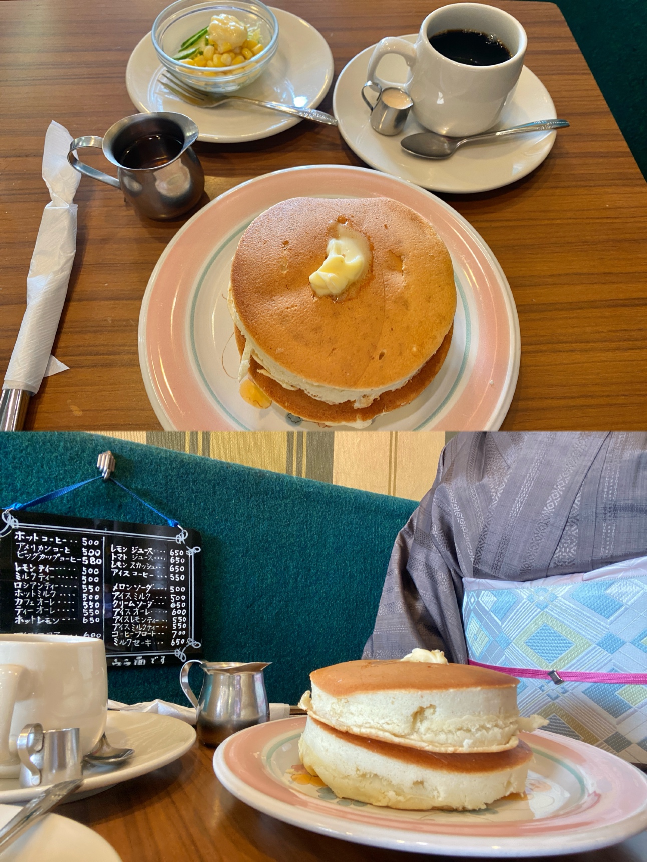 生地から丁寧に作って下さるので少々時間がかかりますが、鉄板で焼いている香りを楽しみながらゆっくり待つのも贅沢な時間。そして、どっしりと重みのある分厚いホットケーキに感動でした♡