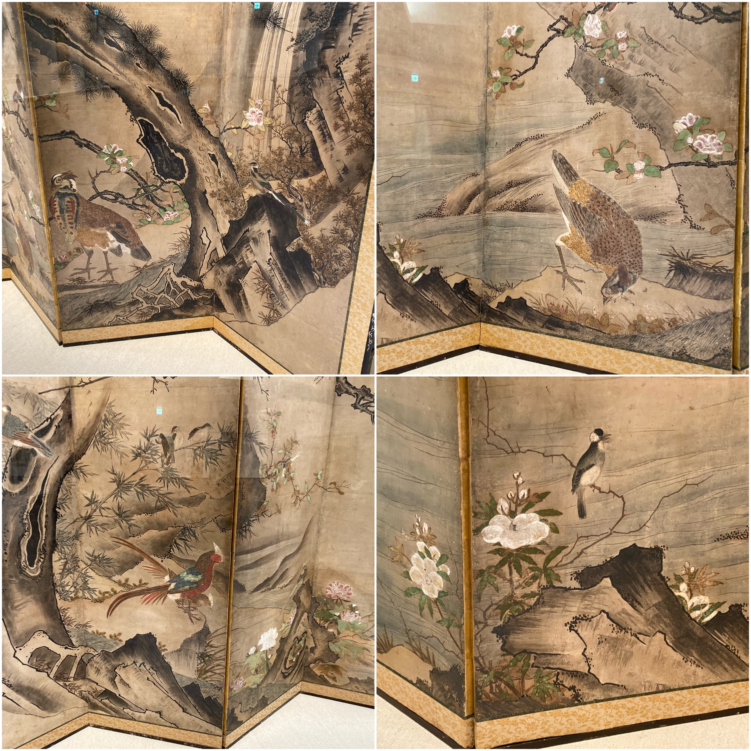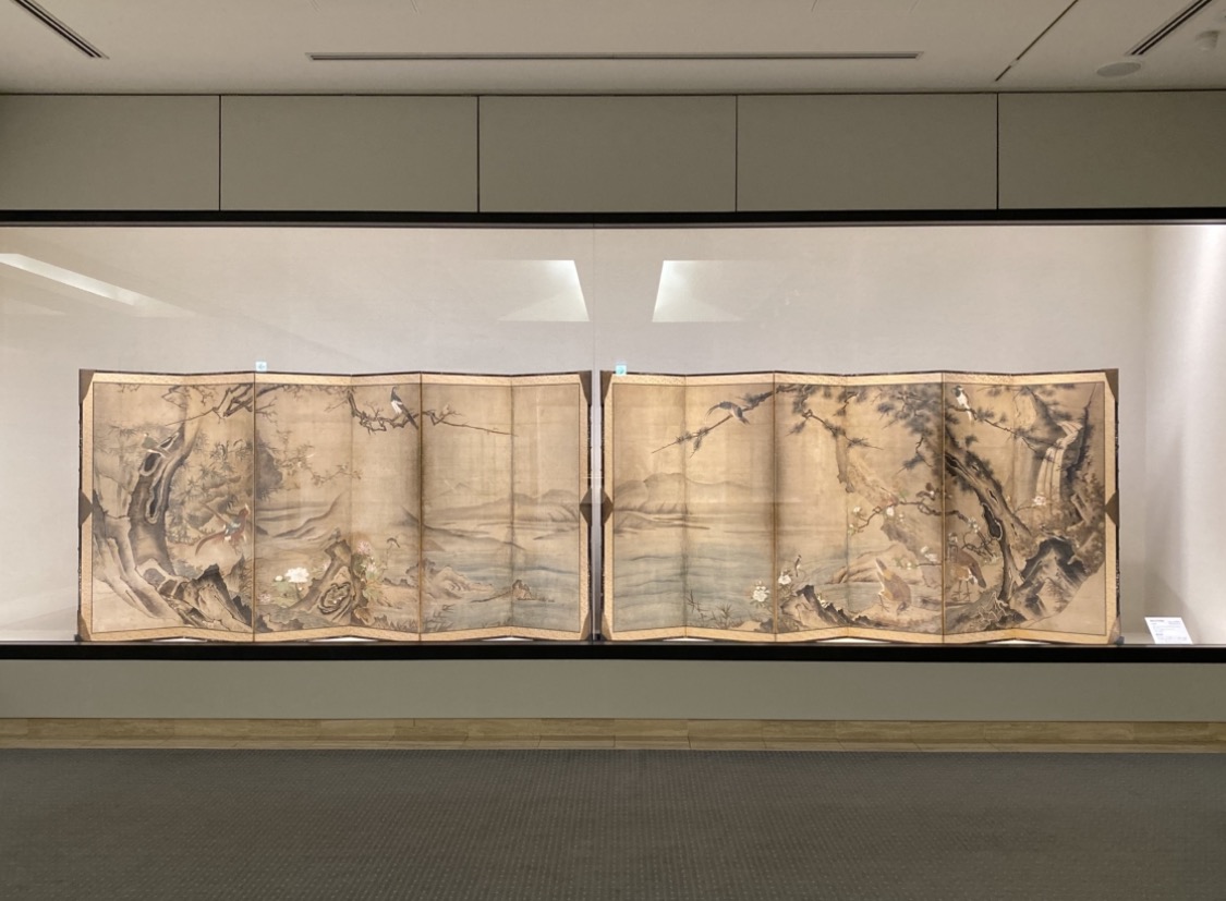 今回の展示で特に心惹かれたのは、「老松古木花鳥図(ろうしょうこぼくかちょうず)」の屏風。