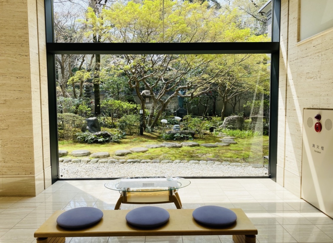 ロビー越しに眺める中庭の景色さえも、ひとつの作品のようです。