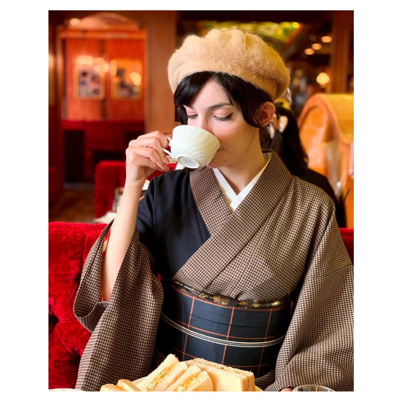 着物でカフェ・喫茶店 ゆったり流れる時間☕️ 着物で過ごす 心安らぐカフェブレイク キモノプラス公式 2026.03.23 春のやわらかな陽射しに誘われて、ほっと一息つけるカフェ時間が恋しくなる季節ですね。お気に入りの着物に袖を通して、いつもの喫茶店へ足を運べば、日常が少しだけ特別なひとときに変わります。着物で過ごすカフェ時間は、心までゆったりと満たしてくれる贅沢な楽しみ方です。 目次 Toggle 【着物で行きたいカフェ選びのポイント】【レトロ喫茶に映える着物コーディネート】【カフェ時間を美しく過ごす所作と小物選び】【コーデギャラリー】 【着物で行きたいカフェ選びのポイント】落ち着いた雰囲気の喫茶店や、和の趣を感じるカフェは着物との相性が抜群です。木の温もりを感じる店内や、静かな空間なら、着物姿でもリラックスして過ごせます。椅子席のあるお店を選ぶと、着崩れの心配も少なく安心です。長時間座る場合は、帯が背もたれに当たりにくい姿勢を意識すると、より快適に過ごせます。【レトロ喫茶に映える着物コーディネート】どこか懐かしさを感じる喫茶店には、アンティーク調の小紋や大正ロマン風の柄がおすすめです。えんじ色や深緑、からし色など深みのあるカラーを選ぶと、クラシカルな店内と調和します。半幅帯や幾何学模様の帯で軽やかさを出し、ベレー帽やレースの半衿を添えると、より一層レトロな雰囲気が高まります。【カフェ時間を美しく過ごす所作と小物選び】カフェでは袖がテーブルに触れないよう軽く押さえるなど、所作を意識すると上品な印象に。帯や小物は主張しすぎないものを選びつつ、帯揚げや帯締めでほんのり彩りを添えると全体が引き締まります。草履やバッグもカジュアル寄りで統一すると、気負わない大人のおでかけスタイルが完成します。着物で訪れるカフェ時間は、日常に優雅な彩りを添えてくれるひととき。お気に入りの一着で、心ときめくおでかけを楽しんでみてください。【コーデギャラリー】「着物でカフェ・喫茶店」のコーデ実例をご覧ください。ぜひ、お出かけの参考にしてみてください!https://www.instagram.com/satomi.19/https://www.instagram.com/takashima_yukiko/https://www.instagram.com/kimonorui/https://www.instagram.com/ekubo_kimono/https://www.instagram.com/an_likes_vintage_kimono/キモノプラスはキモノ女性のためのライフスタイルマガジン👘✨〈私らしく、着物で輝く〉を応援します!素敵な写真の提供者を紹介いたします!皆様ありがとうございます!😚🙌Special Thanks💐Photo by@kimono.anna@kinako_mochi103@masan.san@usagikomachi@touko125a 記事をシェアする 新着記事 チェック柄 スタイルアップ効果も◎ チェック柄で叶える洗練された着姿 みんなの3月コーデ#1 #kimonoplus 卒業式の着物 品格と華やかさを添える✨ 卒業式にふさわしい着物姿 アフタヌーンティー 人の嗜み🍰 着物で過ごす 上品で贅沢なティータイム みんなの 2月コーデ#2 #kimonoplus アールデコ調 直線と曲線が織りなす芸術🎨 アール・デコ調で魅せる モダンな着物美 かんざしアレンジ シンプルなまとめ髪も華やかに! かんざしで魅せる、 あなただけの個性 苺柄 大人可愛いを叶える🍓 苺柄の上品な遊び心