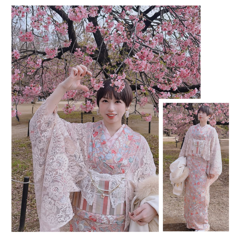 2026お花見記録 和の心と桜が響き合う🌸 着物で紡ぐ特別な時間 キモノプラス公式 2026.04.17 やわらかな春の風に、ふと心がほどける季節になりました。桜の便りが届くと、「今年はどこでお花見をしよう」と胸が高鳴りますよね。せっかくの特別なひととき、今年はぜひ着物でお出かけしてみませんか?いつものお花見が、ぐっと華やかで思い出深い時間へと変わります。 目次 Toggle 【着物でお花見がもっと楽しくなる理由】【2026年おすすめのお花見コーデ】【お花見で気をつけたい着物マナー】【コーデギャラリー】 【着物でお花見がもっと楽しくなる理由】満開の桜と着物の相性は、まさに日本の美そのものです。淡いピンクや優しいパステルカラーの着物は、春の景色に溶け込み、写真映えも抜群。さらに、季節感を大切にした装いは、大人の女性ならではの品格を引き立ててくれます。洋服とはひと味違う特別感が、お花見の時間をより豊かなものにしてくれます。【2026年おすすめのお花見コーデ】今年は「軽やかさ」と「春らしさ」がキーワード。例えば、小紋(普段着用のカジュアルな着物)に、桜や草花の帯を合わせるだけで、季節感たっぷりのコーディネートが完成します。足元は歩きやすい草履を選び、羽織やストールをプラスすれば、気温差にも対応できます。淡い色合いでまとめると、より優雅な印象になりますよ。【お花見で気をつけたい着物マナー】屋外での飲食が中心となるお花見では、汚れ対策も大切です。食事の際はハンカチを膝に置く、袖を軽く押さえるなど、ちょっとした工夫で着物をきれいに保てます。また、長時間歩く場合は無理をせず、ゆったりとしたスケジュールを心がけましょう。心地よく過ごすことが、何よりの美しさにつながります。2026年のお花見は、ぜひ着物で春の風情を楽しんでみてください。桜の下で過ごすひとときが、きっと忘れられない思い出になります。素敵なコーディネート実例をご覧ください。 【コーデギャラリー】――――――――――「2026お花見記録」のコーデ実例をご覧ください。ぜひ、お出かけの参考にしてみてください!https://www.instagram.com/satomi.19/https://www.instagram.com/takashima_yukiko/https://www.instagram.com/kimonorui/https://www.instagram.com/ekubo_kimono/https://wwwhttps://www.instagram.com/miya_photo_album.instagram.om/an_likes_vintage_kimono/https://www.instagram.com/k.epiphany/キモノプラスはキモノ女性のためのライフスタイルマガジン👘✨〈私らしく、着物で輝く〉を応援します!素敵な写真の提供者を紹介いたします!皆様ありがとうございます!😚🙌Special Thanks💐Photo by@usagikomachi@otsukisama31_kimono@sakura._.mochi._.kimono@kimonolove2020@miya_photo_album@ritakoma_a 記事をシェアする 新着記事 みんなの 4月コーデ#1 #kimonoplus みんなの 3月コーデ#2 #kimonoplus 入学式の着物 晴れの日に、華を添える🌸 入学式に着物で迎える、特別な一日 着物でカフェ・喫茶店 ゆったり流れる時間☕️ 着物で過ごす 心安らぐカフェブレイク チェック柄 スタイルアップ効果も◎ チェック柄で叶える洗練された着姿 みんなの3月コーデ#1 #kimonoplus 卒業式の着物 品格と華やかさを添える✨ 卒業式にふさわしい着物姿 アフタヌーンティー 人の嗜み🍰 着物で過ごす 上品で贅沢なティータイム